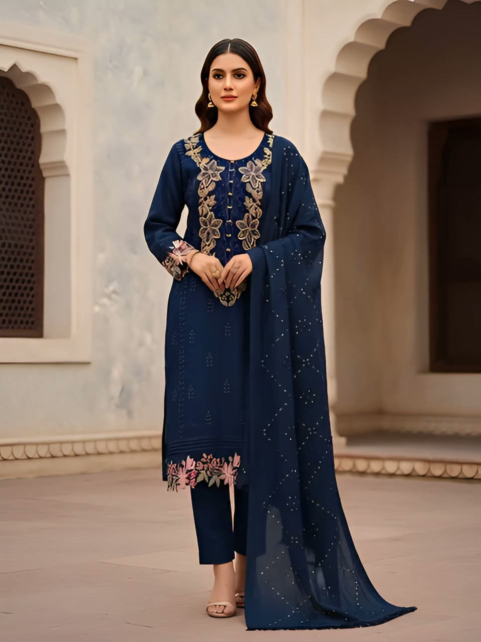 Black Aura – 3 Pcs Embroidery Work Suit with Dupatta & Pant
